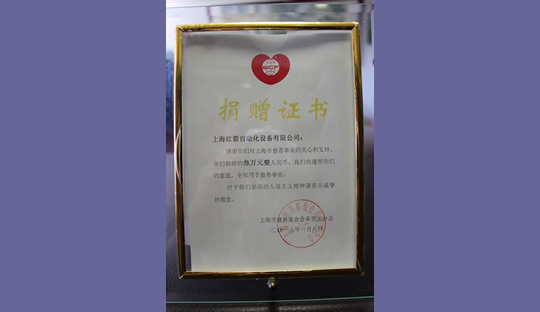 2015年,上海紅箭自動化設備有限公司為上海市慈善基金會捐款